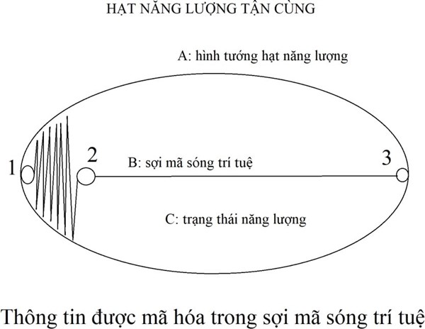 Hạt năng lượng tận cùng được cấu tạo bởi 3 yếu tố, hay còn gọi là tam hợp hạt năng lượng: sợi mã sóng trí tuệ, trạng thái năng lượng và hình tướng hạt là hình elip. Sợi mã sóng trí tuệ là kết quả của quá trình giải mã và mã hóa thông tin sau quá trình tương tác, sinh khởi rung động, hành động và kết thúc hành động. Khi sợi mã sóng trí tuệ được hình thành sẽ cấu tạo thành màng bọc có hình elip, gọi là hình tướng của hạt năng lượng tận cùng. Từ sợi mã sóng trí tuệ, tại điểm số 2 trong sợi sẽ sinh phát ra trạng thái năng lượng, hay còn gọi là sóng điện trong hạt. Điều này cho thấy, sợi mã sóng trí tuệ chứa đựng thông tin có sóng điện (trạng thái năng lượng), cho thấy thông tin chính là năng lượng, thông tin chính là sóng điện, thông tin là hạt năng lượng. Như vậy, thông tin có sức mạnh cấu tạo thành vạn vật trong và ngoài Vũ trụ, Tuệ linh và con người.