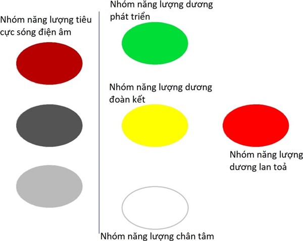 + Nhóm hạt năng lượng tận cùng sóng điện âm màu xám. Đây là nhóm hạt năng lượng âm có tốc độ ngược chiều kim đồng hồ nhẹ hơn hai nhóm năng lượng âm trên. Tuy nhiên sức hút cũng là mạnh.