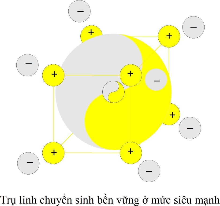 - Cấu trúc Trụ linh của Tuệ linh, con người ở mức Tỏa rất mạnh chuyển sinh thành Tỏa siêu mạnh sau quá trình thực hành đời sống Tỏa trong môi trường có sóng điện dương.
