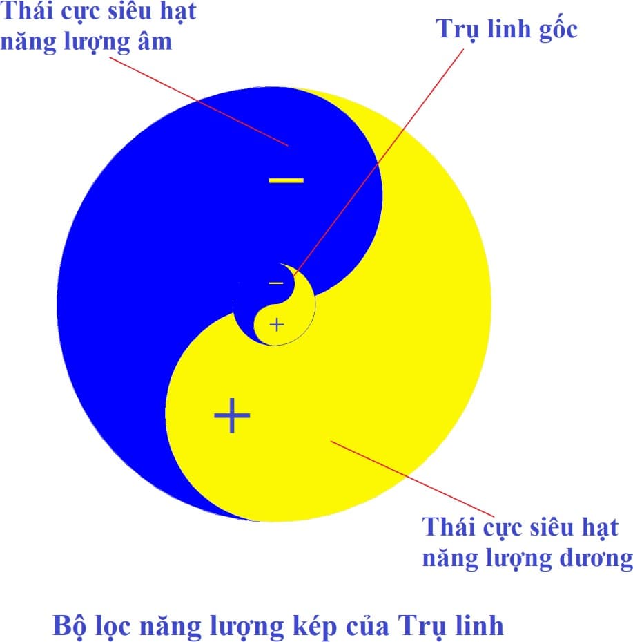 + Thái cực chứa đựng các siêu hạt năng lượng dương tận cùng cùng với thái cực chứa đựng các siêu hạt năng lượng âm tận cùng tạo thành phần bên ngoài của Trụ linh gốc để cấu tạo thành bộ lọc năng lượng kép của Trụ linh.